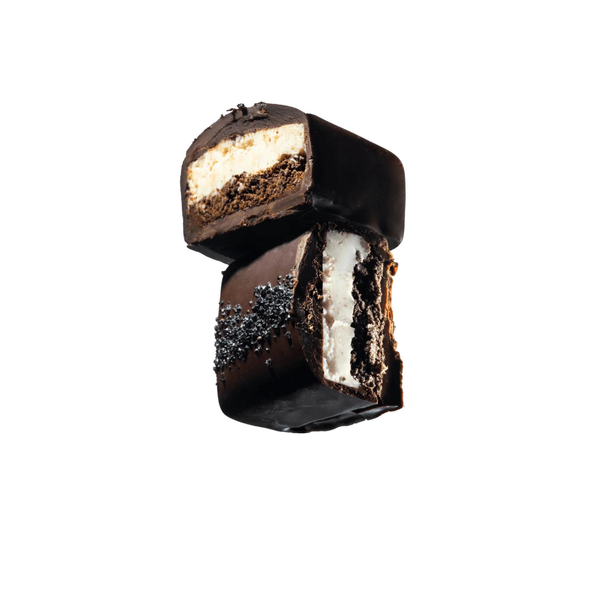Delicate layers of soft vanilla creme, gluten-free chocolate cookie, and buttery textured ganache, all topped with a shimmering starry sky of detoxifying activated charcoal. This exquisite layered chocolate creation is your answer to mindful bliss, perfect for those who seek both pleasure and purity in every bite. This treat promises an experience that's as delightful as it is beneficial. Made in Byron Bay, Australia.