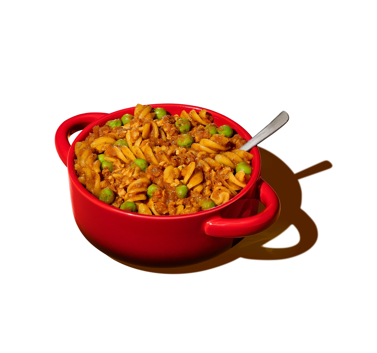 Ingredients: Yellow Pea Flour, Chickpea Flour, Pea Protein (tapioca starch, sodium carbonate, vitamin E (mixed tocopherols)), Tomato, Peas, Carrot, Enriched Yeast Flakes (niacin, pyridoxine hydrochloride, thiamin hydrochloride, riboflavin, folic acid, cyanocobalamin (B12 produced by natural fermentation)), Onion, Celery, Salt, Natural Meat Flavor including (yeast extract, natural flavor, tapioca starch, potato maltodextrin, coconut oil, sunflower oil), Natural Parmesan Flavor (autolyzed yeast extract, potato maltodextrin, coconut oil), Black Pepper, Garlic Powder, Spice, Silicon Dioxide (anti-caking).