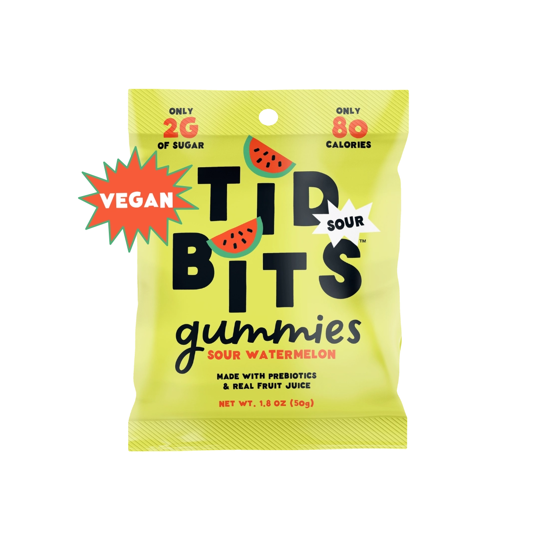 THE WAY CANDY SHOULD BE. TiDBiTS sits at the intersection of a sweet treat and a mindful eater. A lower calorie and sugar gummy that is made with functional benefits such as prebiotics and real fruit juice for a more mindful choice when deciding to indulge. These mind-blowingly delicious gummy slices don’t compromise on ingredients or flavor. Instagram: @tidbitscandy * Only 2g of sugar for the entire bag * Only 80 calories per bag * Vegan * Beneficial prebiotic fiber * Made with real fruit juice * NO artificial colors, flavors, or dyes * NO sugar alcohols * NO artificial sweeteners * NO corn syrup * NO seed oils * Gluten free * Proudly made in the USA
